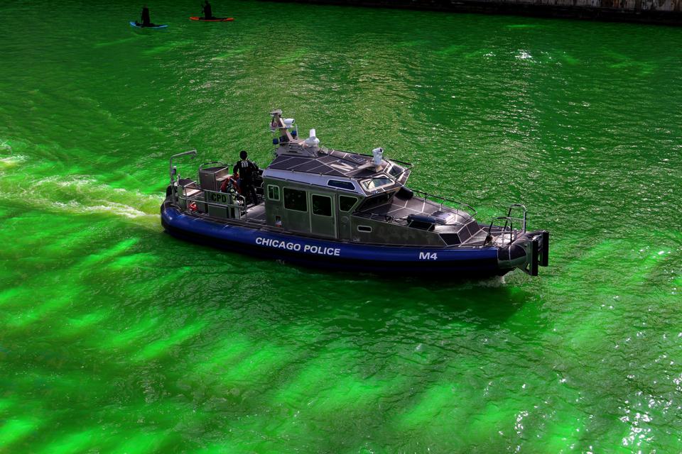 CHICAGO – MARCH 16: A Chicago Police boat patrols the Chicago River in Chicago, Illinois on March … [+]