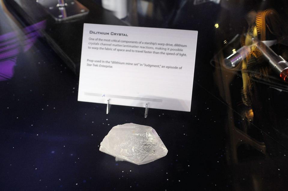 LOS ANGELES, CA – OCTOBER 10: Dilithium crystal prop on display at “Star Trek – The Exhibition” at … [+]