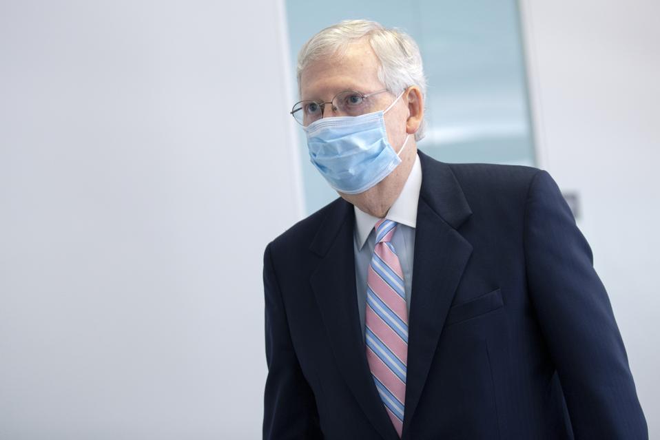 WASHINGTON, DC – AUGUST 06: Senate Majority Leader Mitch McConnell (R-KY) walks through the Hart … [+]