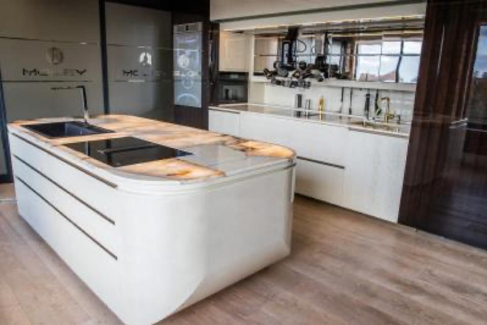 Anyone who wants to purchase the kitchen will be able to make some custom choices to match the style of the rest of their home, including a choice of premium marbles, onyx and Corian countertops along with different options for the kitchen cabinet finishes.